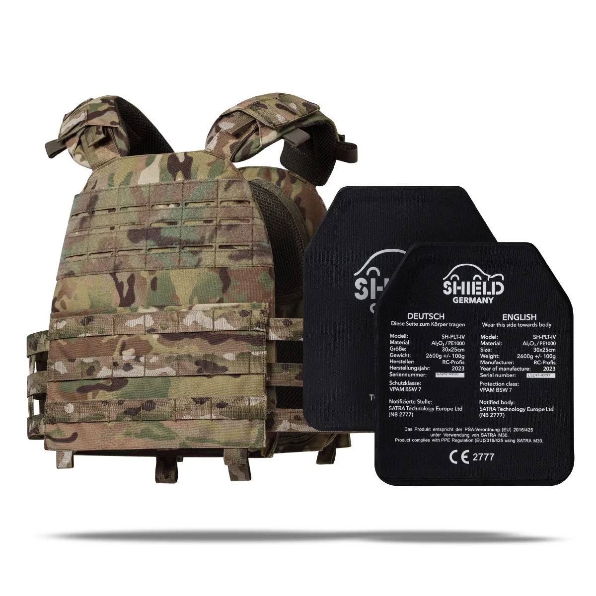– 2 бронеплити 6-го класу Shield Germany® SK4 (вага 2.65 кг, матеріал кераміка алюміній оксид Al₂O₃);