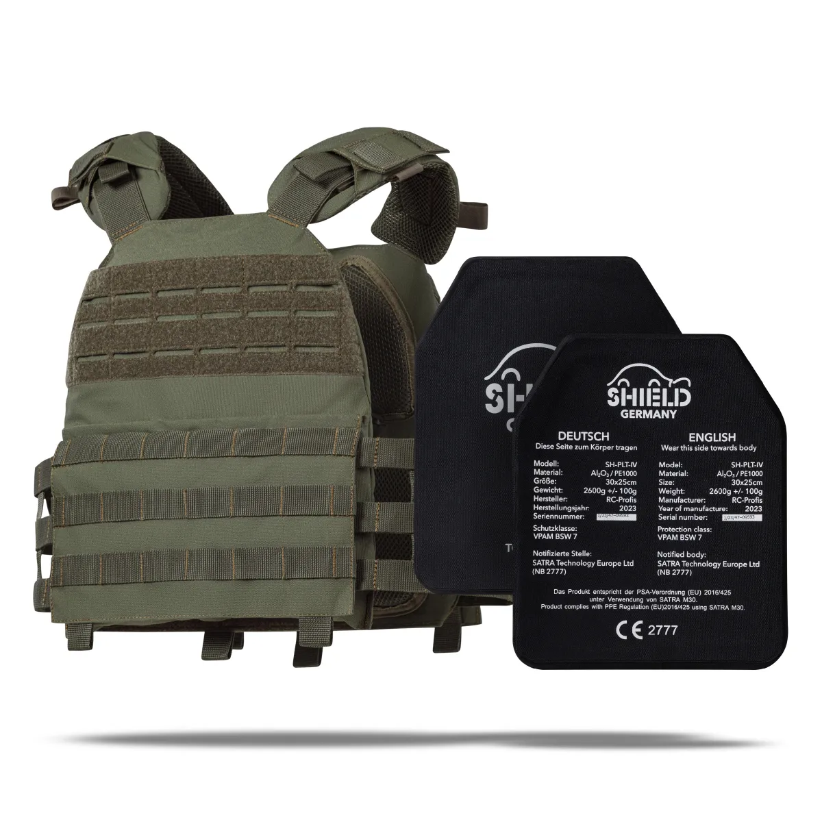 – 2 бронеплити 6-го класу Shield Germany® SK4 (вага 2.65 кг, матеріал кераміка алюміній оксид Al₂O₃);
