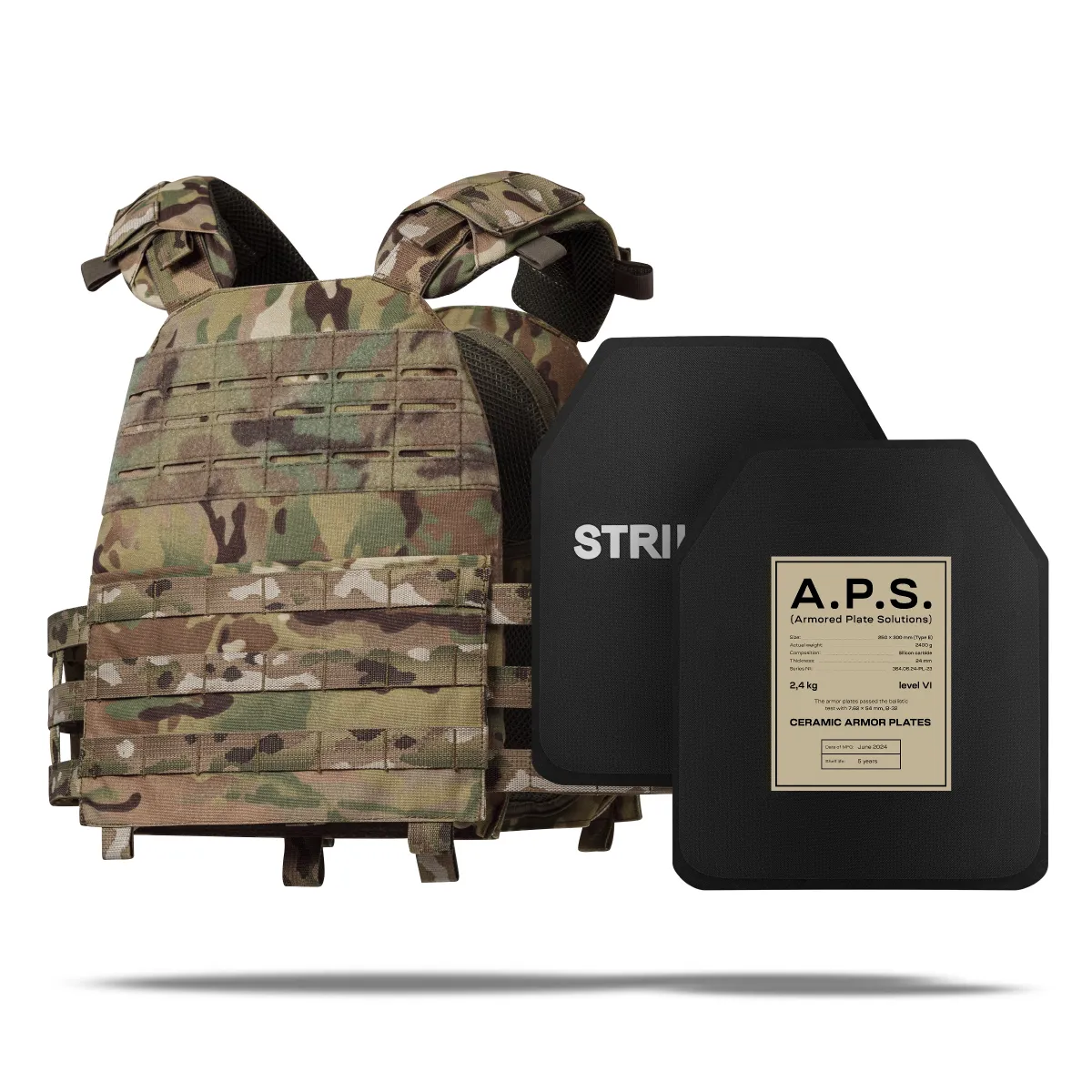 - 2 бронеплити A.P.S. 6-го класу (вага 2.4 кг, матеріал композит кераміки карбіду кремнію SiC) розміру 25х30 см;