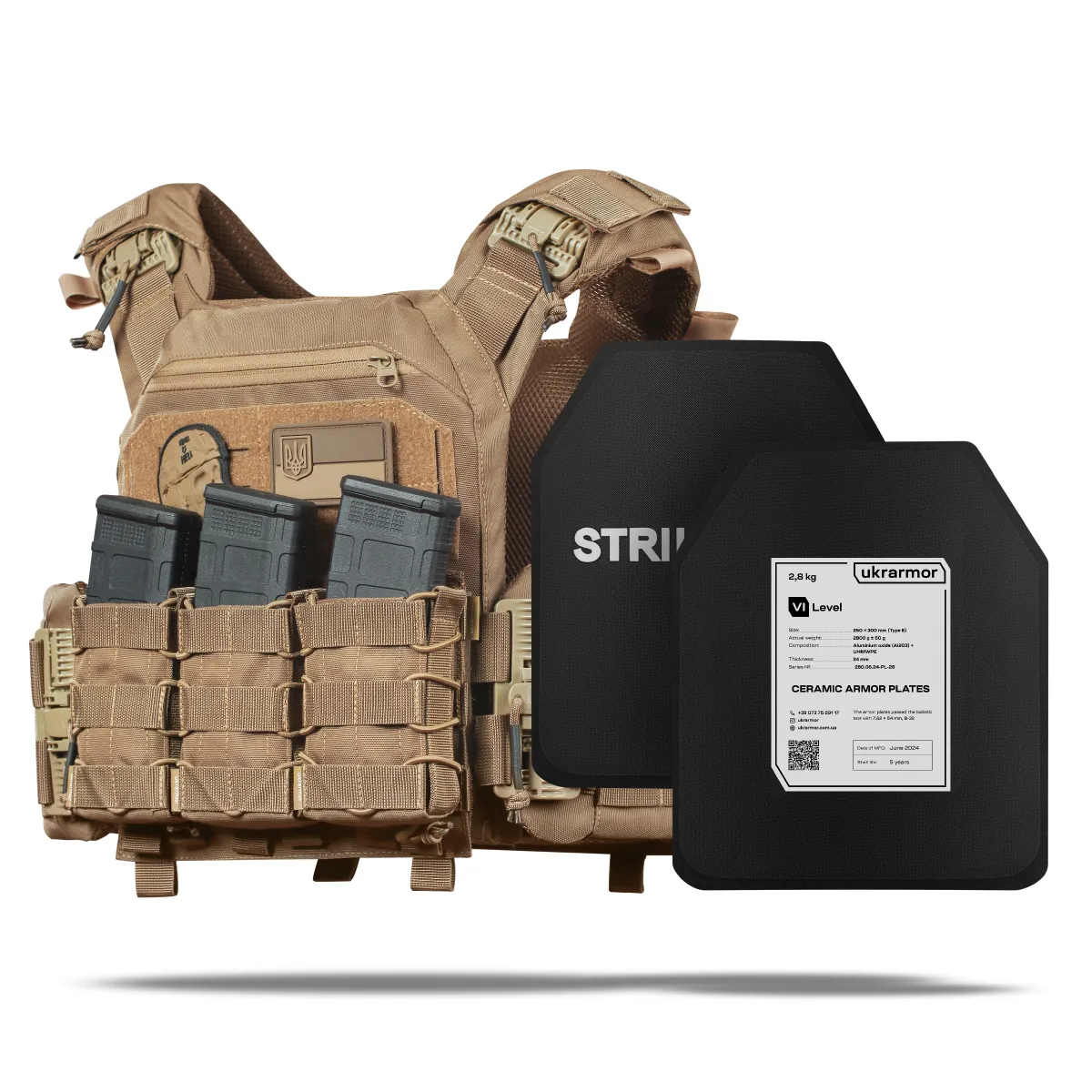 - 2 бронеплити 6-го класу (вага 2.8 кг, матеріал кераміка Алюміній Оксид Al₂O₃);