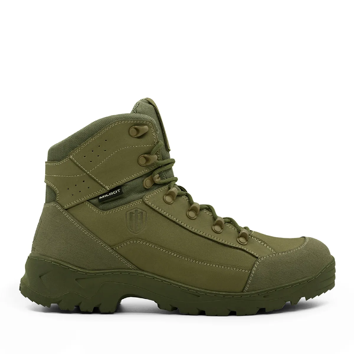 Тактичні черевики Milbot Hunt Cord мають середню висоту, надійно закривають ногу вище щиколотки та захищають від потрапляння снігу й води всередину. Це ідеальне взуття для холодної пори року, коли температура опускається нижче нуля 🥶
