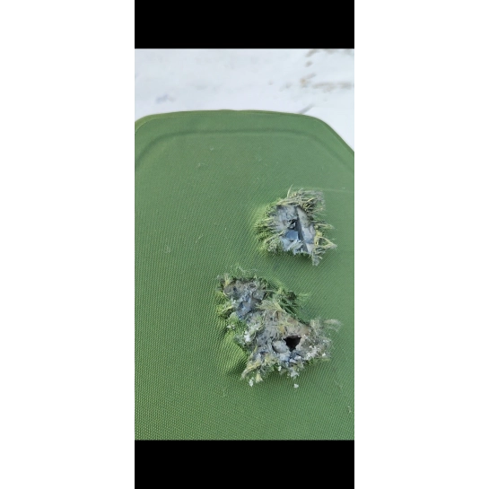Штатна зброя АК,калібр 5.45, з 12 метрів. ТРИ постріли одиночними та ДВІ черги поспіль (по 3-4 патрони). Якість бронеплит відмінна. Відео в наявності.