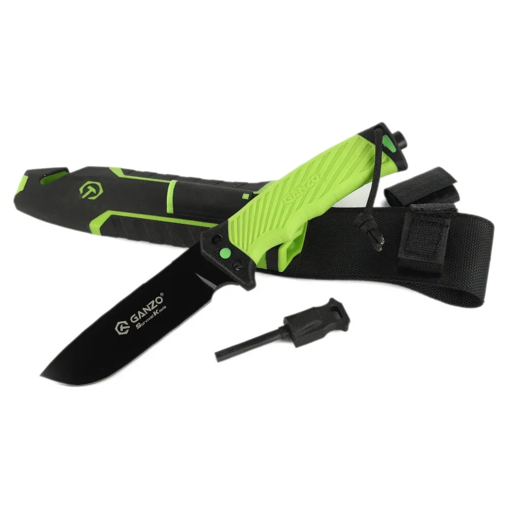 У комплект з ножем входять фірмові чохли, які мають доповнення у вигляді невеликого кресала, стропоріза і компактної пластини, що виконує функцію Точила, якщо під рукою немає повноцінного точильного каменю. Модель Ganzo G8012V2 має отвір під темляк і продається разом з паракордом. Це синтетична мотузка з особливим плетінням, яке підвищує міцність матеріалу. Темляк можна використовувати як додатковий варіант для фіксації вироби на поясі або сумці.