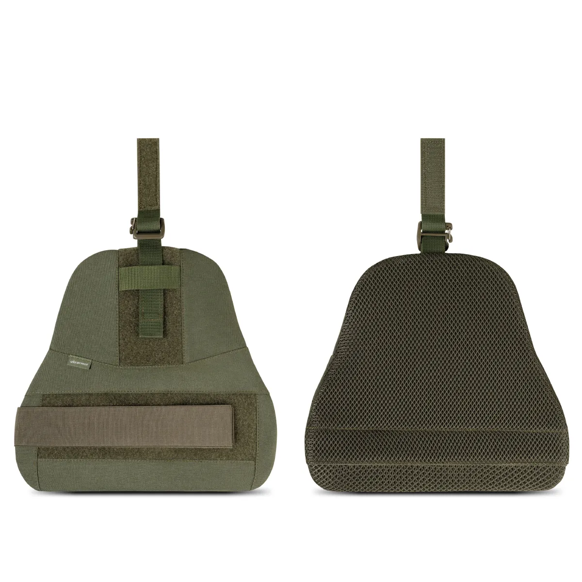 Щодо дискомфорту, вірніше, його відсутності: при розробці плечового захисту нами було приділено чимало уваги створення максимально анатомічної форми виробу, яка не конфліктує з іншими елементами спорядження та не обмежує свободу рухів.