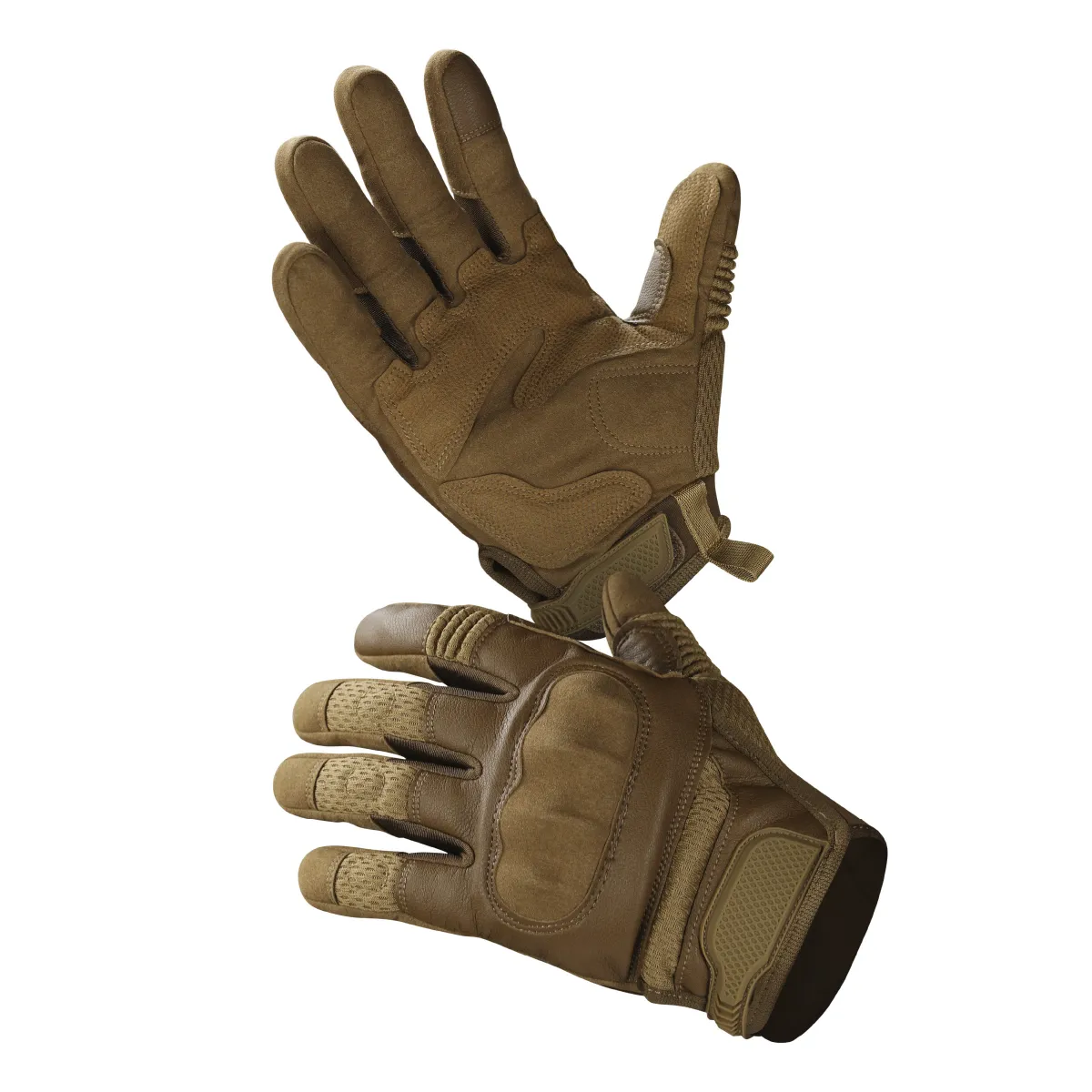 Тактичні рукавички Glotac, шкіряні. Посилені вставки на кісточках. Колір Койот