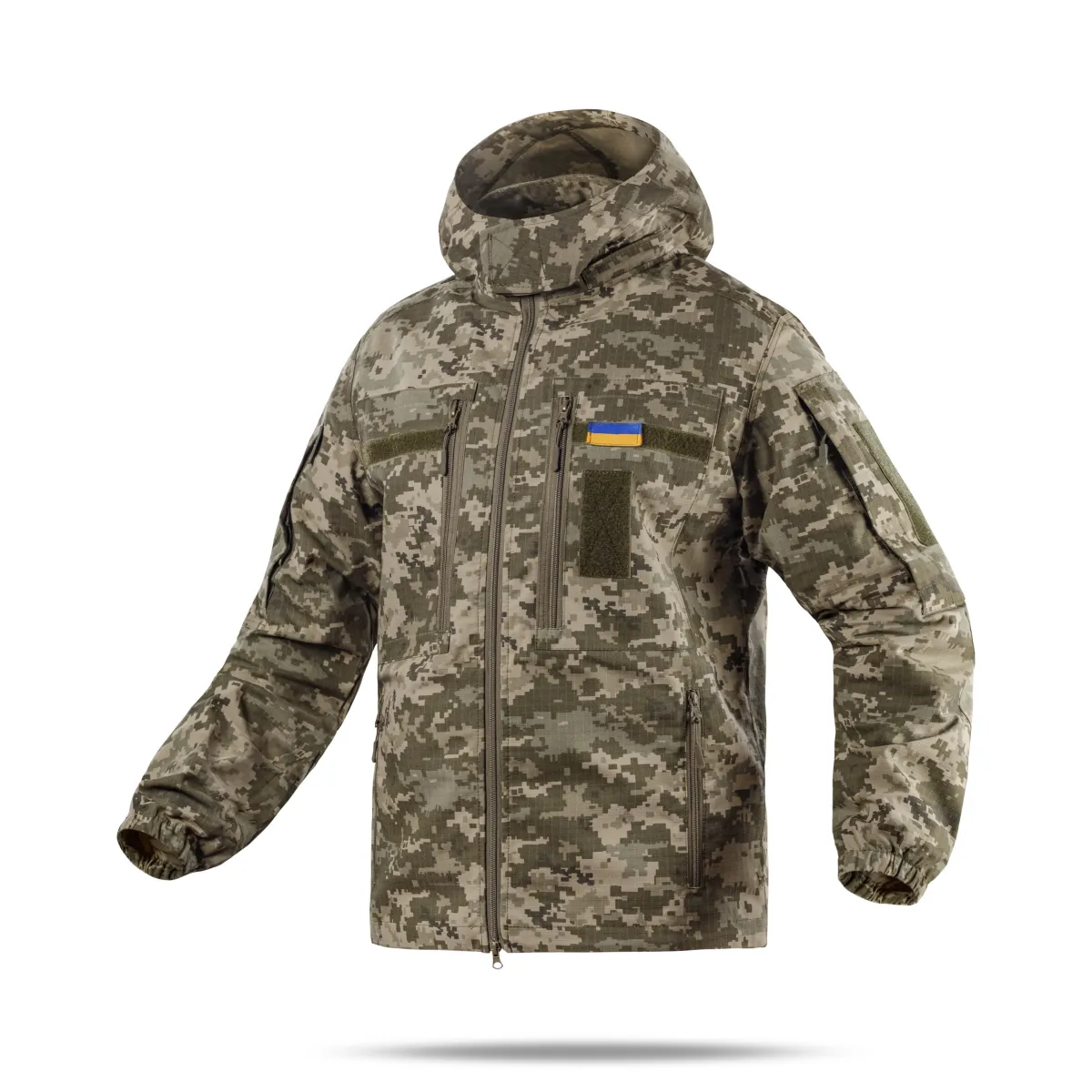 Військова куртка ЗСУ з капюшоном без планки. Армований Rip-Stop. Піксель (мм-14)