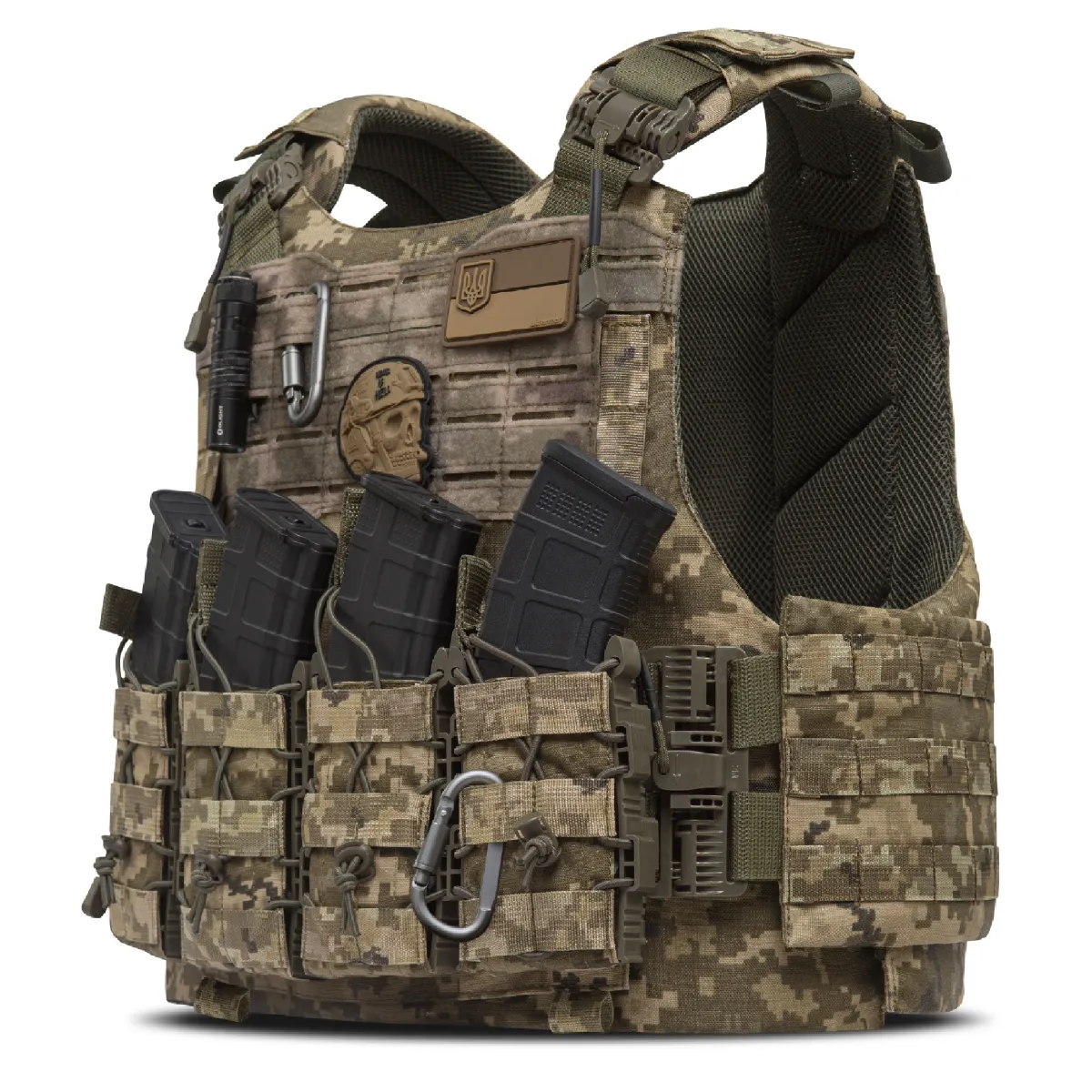 Армейский бронежилет с увеличенной площадью защиты (площадь защиты от осколков покрывает почти все туловище, закрывает со всех сторон), он создан на основе легендарного боевого бронежилета армии США - IOTV 3, именно в нем выполняют свои боевые задачи сухопутные войска США. Основа бронежилета и его особенность - это полноразмерные баллистические пакеты 1-го класса защиты, именно они обеспечат защиту от поражений осколками, рикошетов и выстрелов 9 × 18 мм. Makarov и Luger при весе всего +-3.1 кг 🥷.