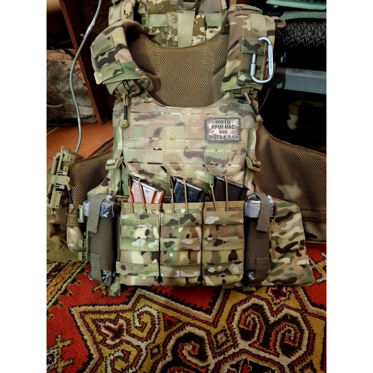 🔟 Вокруг плитоноска обшита стропами PALS (система крепления MOLLE) - это позволит закрепить любое совместимое снаряжение (подсумки, рюкзаки, аптечки и т.д.). Кстати, благодаря увеличенной площади плитоноски, впереди можно закрепить аж 4 магазина под АК/AR.
