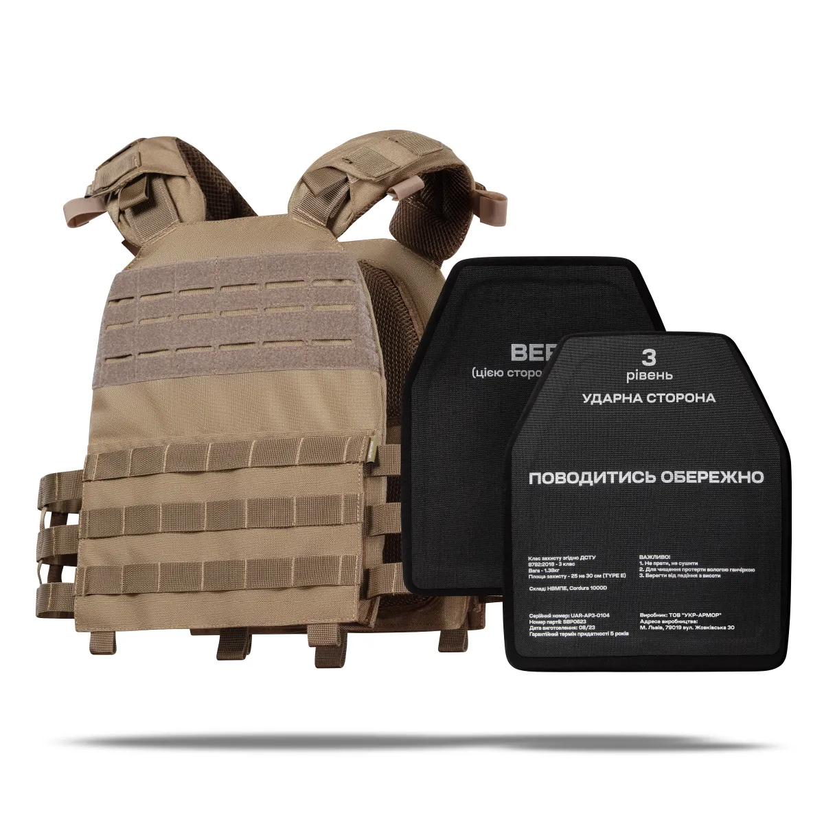 Бронежилет 3-го класса M.V.P. Вес 3.6 кг. Полиэтиленовые плиты, 1.38 кг. Койот