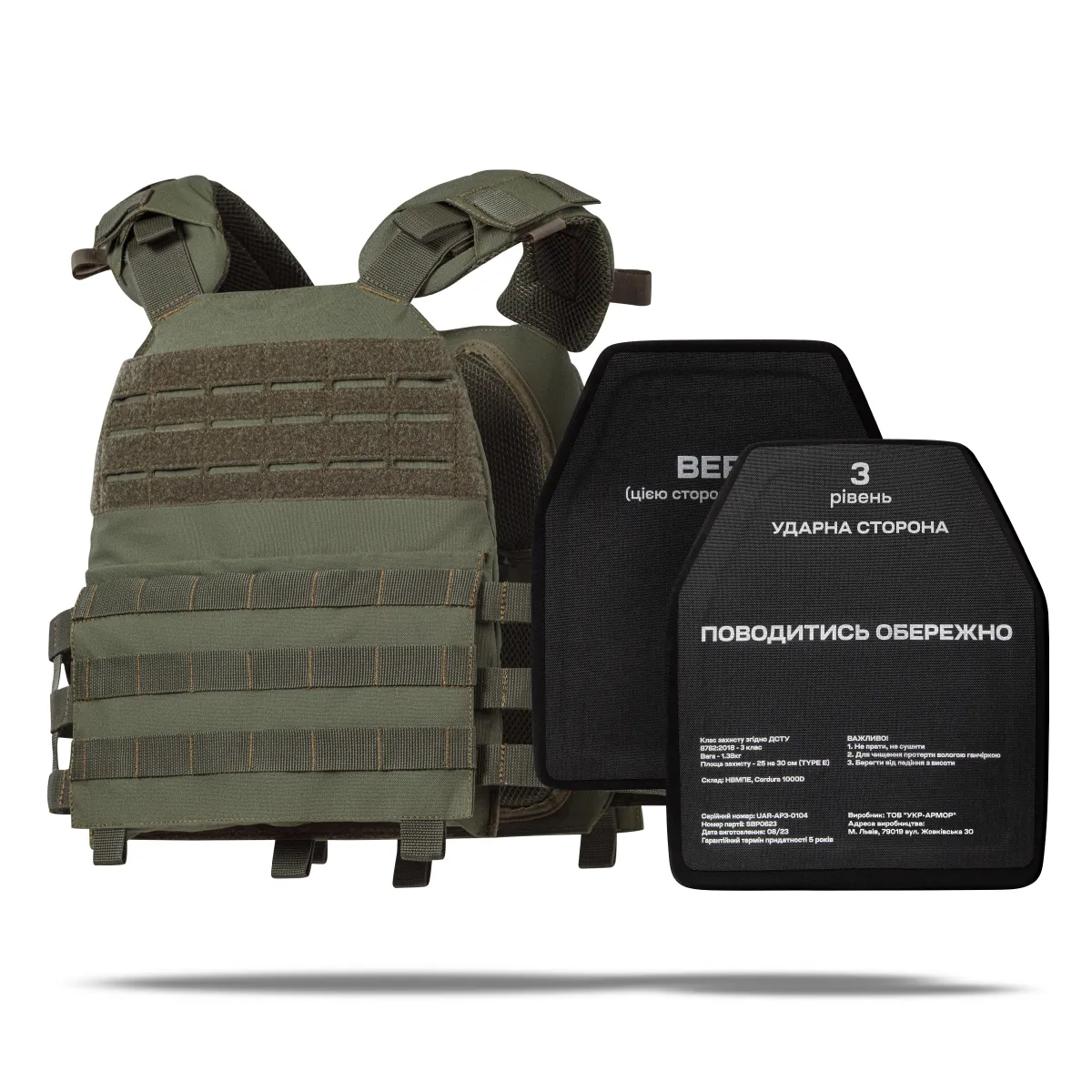 - Комплектация 2 бронеплиты 3-го класса, плитоноска M.V.P.