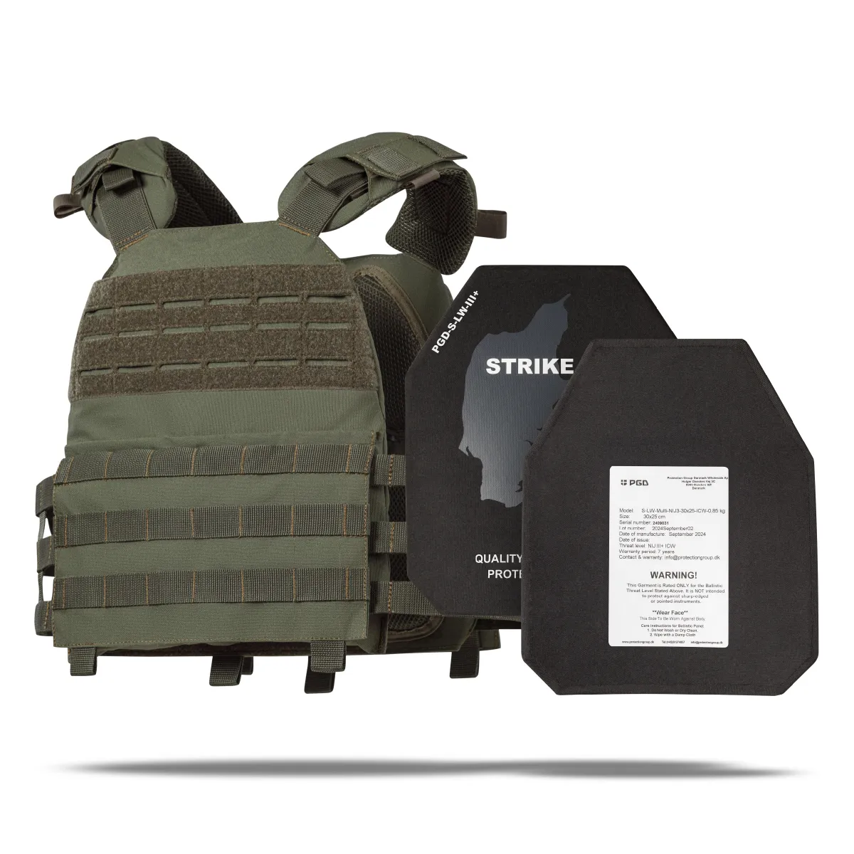 Бронепластины изготавливаются датской компанией Protection Group Denmark по самым высоким стандартам качества и только из сертифицированного CВМПЭ от Honeywell и Dyneema®.