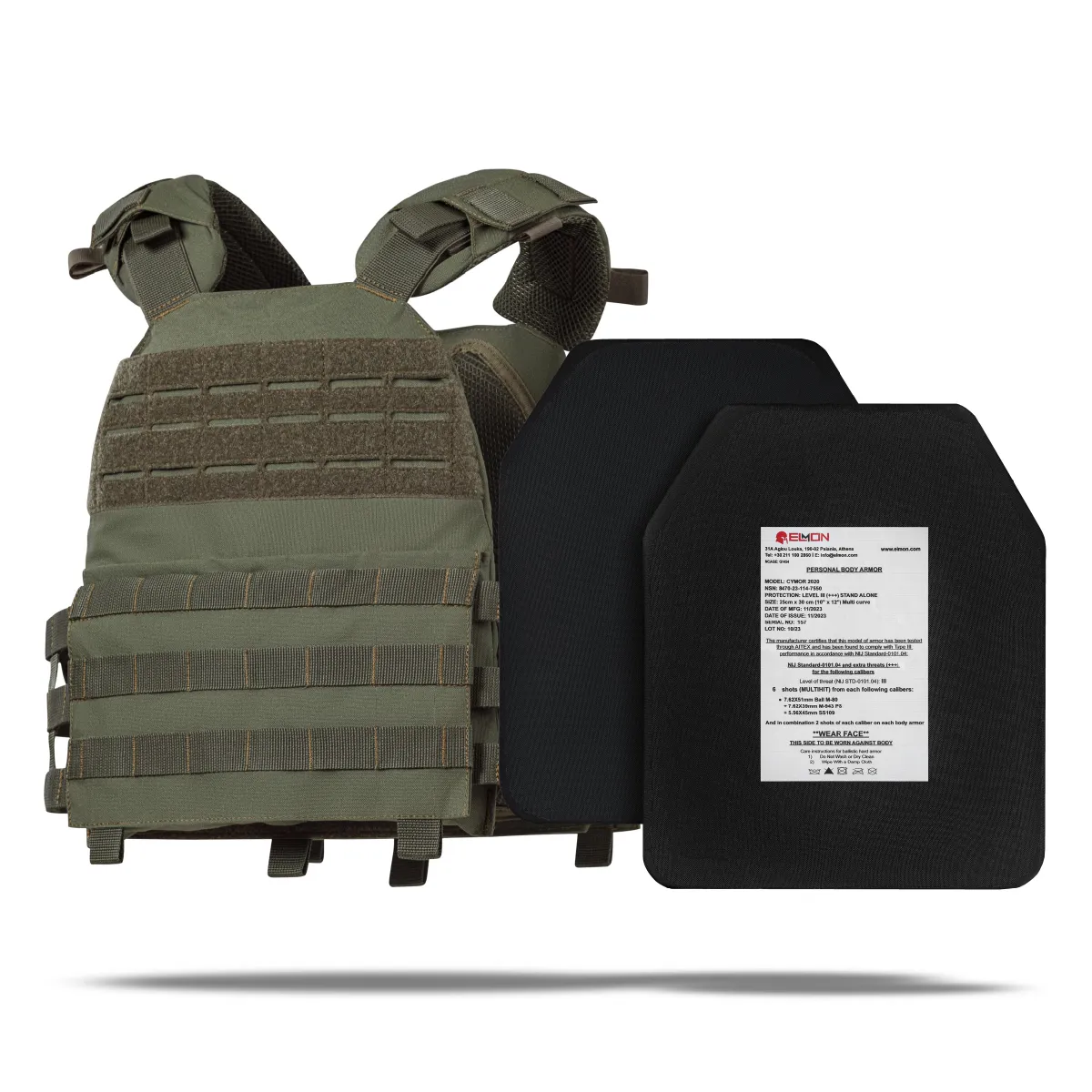 Керамические бронеплиты соответствуют Level III+++ по NIJ Standard-0101.04 (США) и при весе всего 1.75 кг. способны выдержать по 6 попаданий пулей: