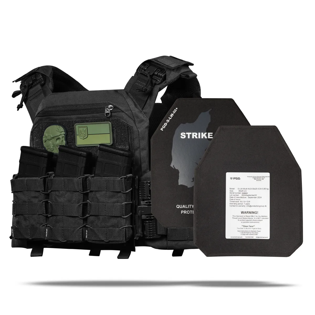Сверхлегкий бронежилет, созданный для профессионалов, которые ценят мобильность и одновременно нуждаются в надежной защите. Он идеально прилегает к телу, благодаря мультиизогнутой конструкции бронеплит, не ограничивает движений и его вес практически не ощущается на себе. В комплекте: две полиэтиленовые пластины (изготовленные в Дании и протестированы в Европейской лаборатории) и улучшенная плитоноска PPO с системой быстрого сброса с супер мягкими подплечниками и материала CORDURA 1000.
