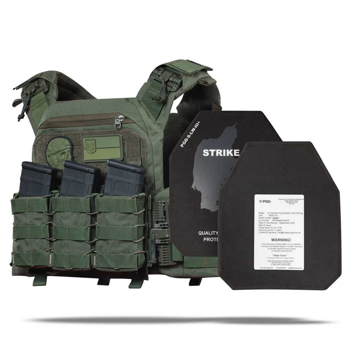 - Комплектация 2 бронеплиты (материал СВМПЭ), плитоноска улучшенная (PRO), копия протокола отстрела
