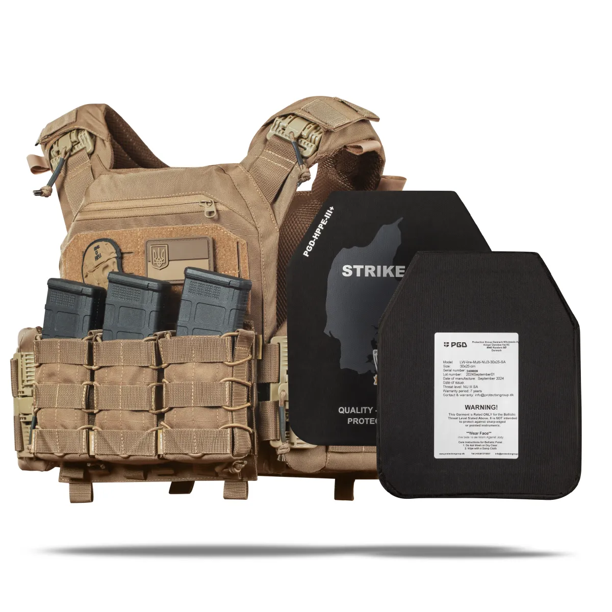 - Комплектация 2 бронеплиты (материал СВМПЭ), плитоноска улучшенная (PRO), копия протокола отстрела