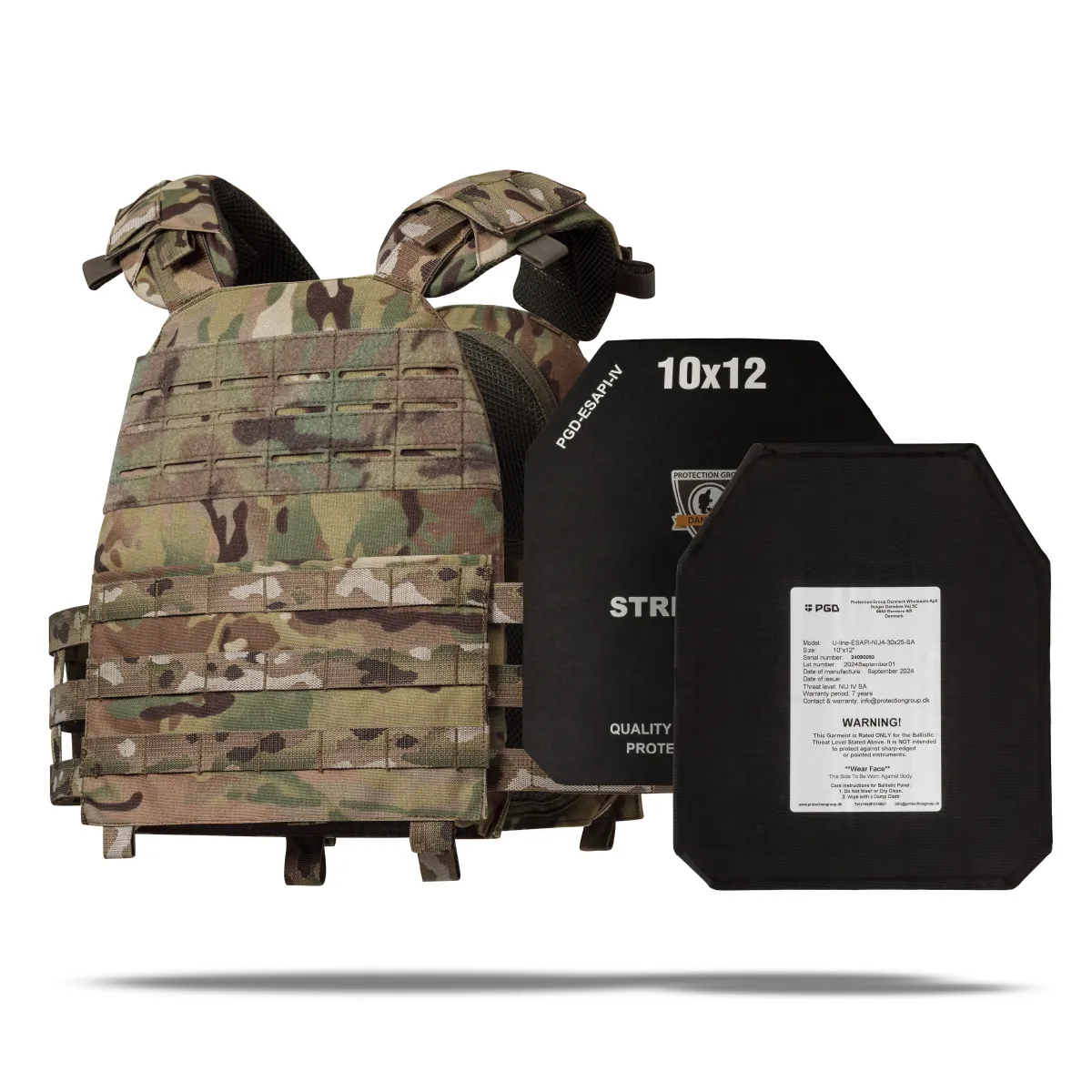 - Комплектация 2 бронеплиты (материал керамика карбид кремния SiC), плитоноска M.V.P., копия протокола отстрела