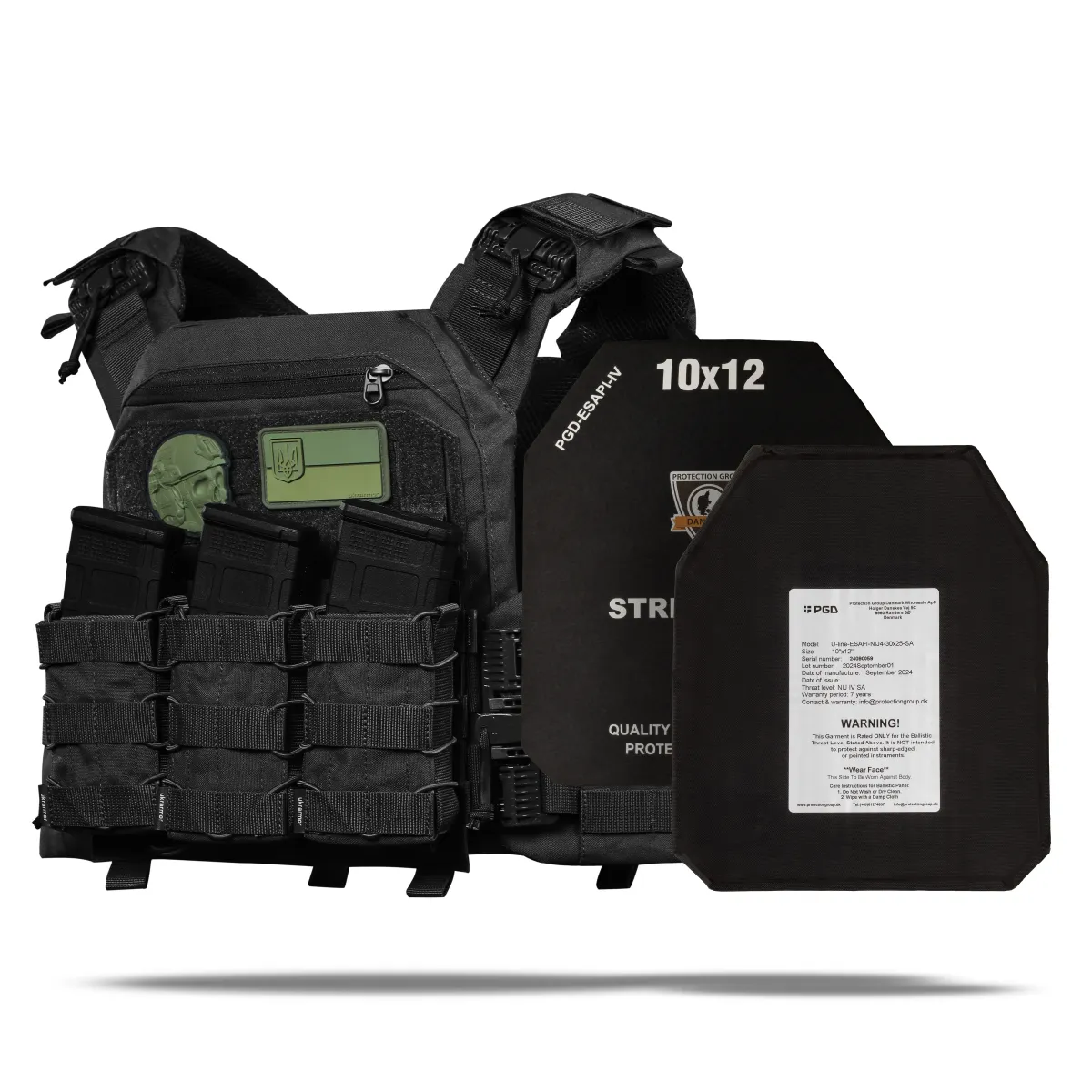 Созданный для самых сложных задач, прочный и надежный бронежилет, который обеспечит вас самым высоким в мире классом защиты (Level IV NIJ 0101.06, аналог 6 класса по ДСТУ) при весе всего 6.4 кг. Комплект состоит из двух керамических бронеплит (изготовленные в Дании и протестированы в лаборатории США) и улучшенной плитоноски PPO с системой быстрого сброса с супер мягкими подплечниками и материала CORDURA 1000.