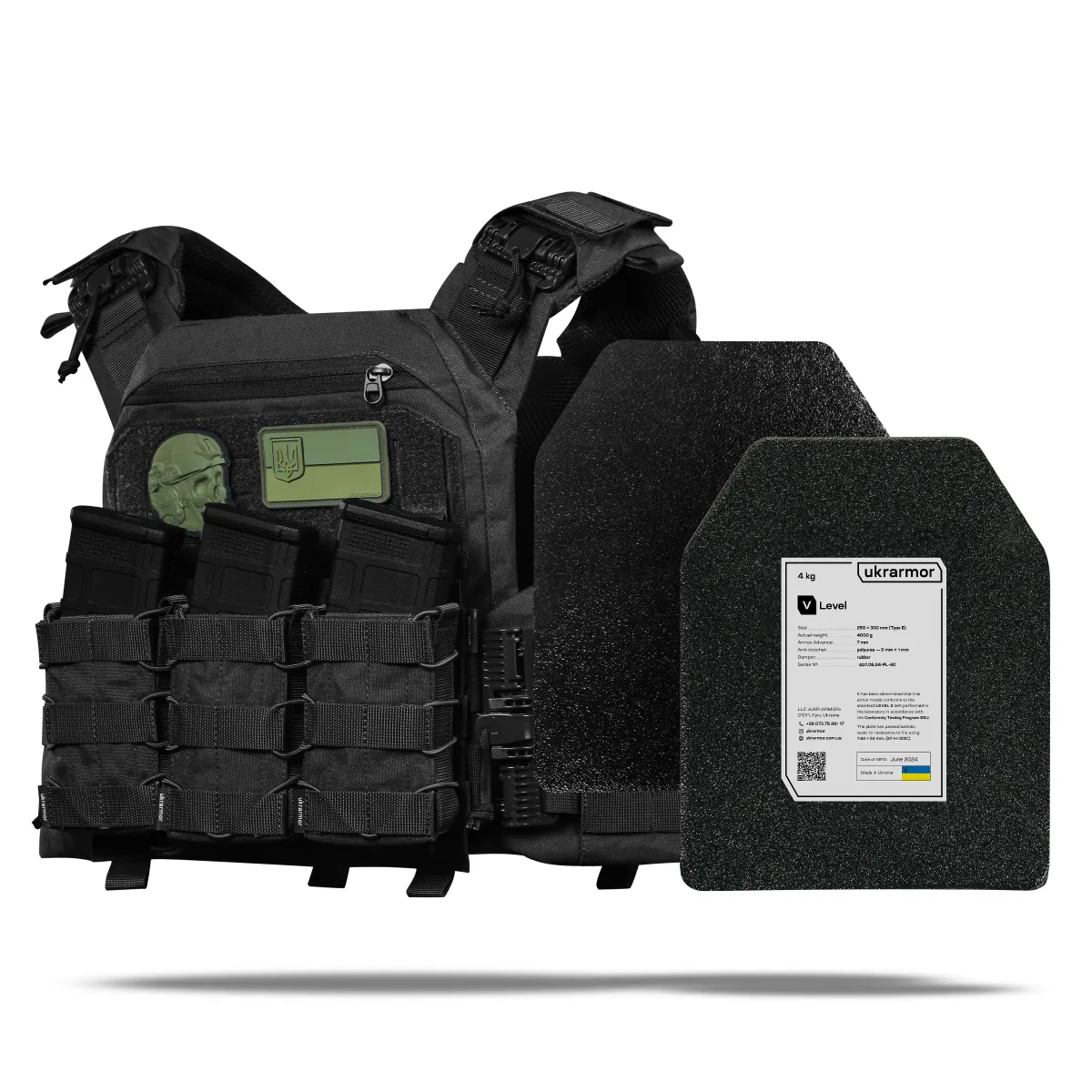 - 2 бронеплиты 5-го класса (вес 4.4 кг, материал шведская бронесталь Armox Advance)