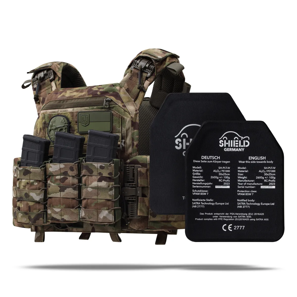 - 2 бронеплиты 6-го класса Shield Germany® SK4 (вес 2.65 кг, материал керамика алюминий оксид Al₂O₃);