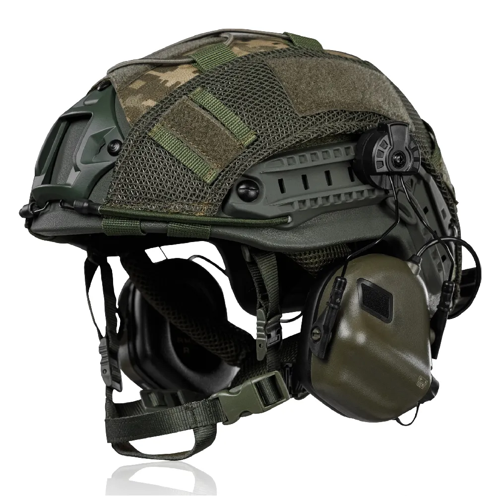 Практический и проверенный комплект для защиты головы, состоящий из шлема FAST, активных наушников M31H с шумоподавлением вредных звуков (более 82 Дб) и маскировочного кавера (тактический чехол на шлем). Этот комплект включает шлем ФАСТ с наушниками.