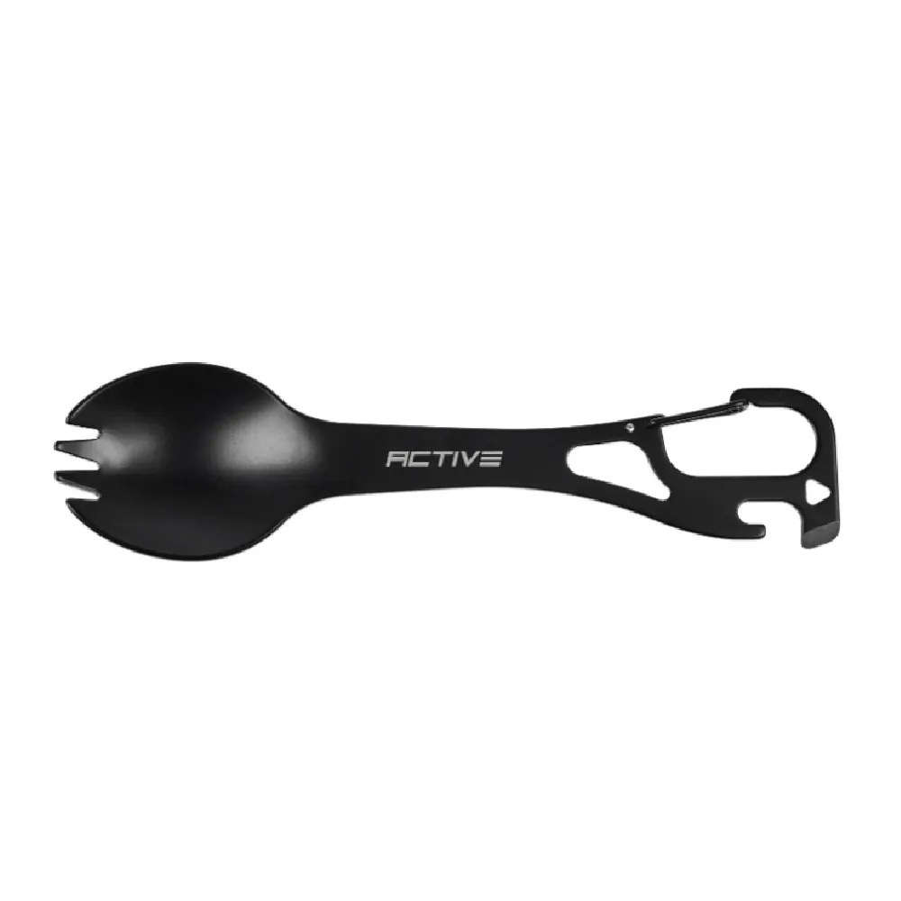 Ложка-вилка с карабином Active Taller, Black. Нержавеющая сталь
