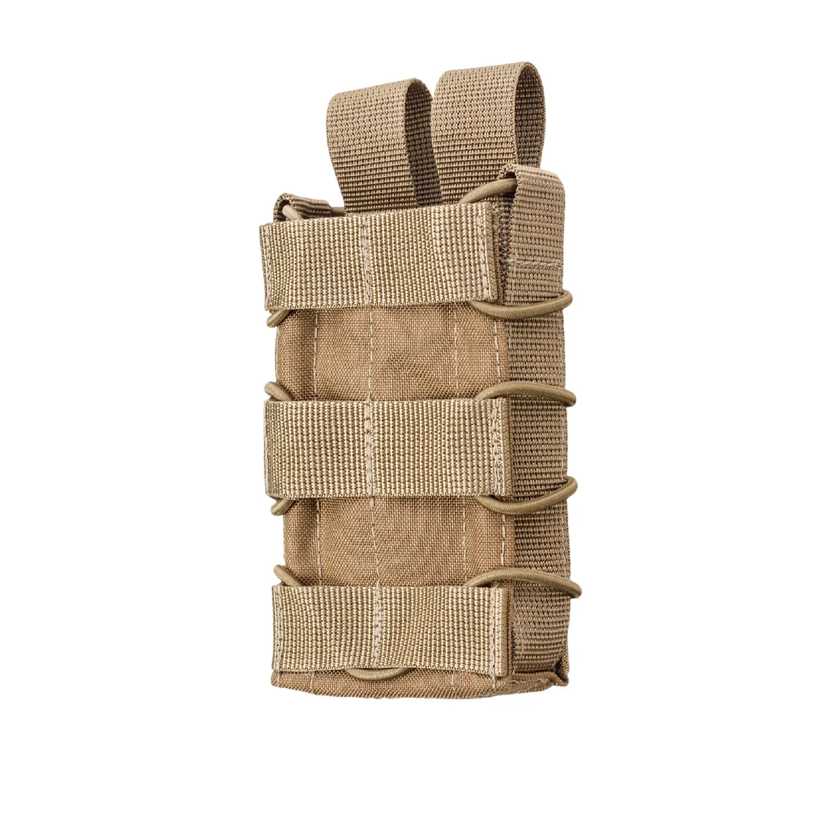 Изготовлен из прочного и устойчивого к износу материала Cordura 1000, этот подсумок также можно регулировать по объему с помощью резинки и фиксатора в нижней части изделия. Он предназначен для одного магазина АКМ/АК-47/74 и серии M4/AR15 и имеет размеры 13 х 3 х 7 см.