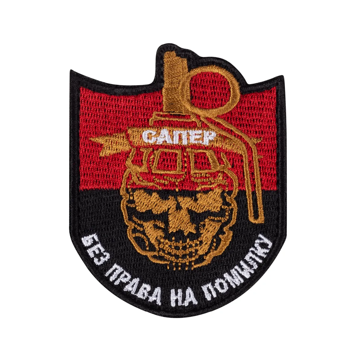 Шеврон (нашивка) Сапер «Без права на ошибку», 9х7см. Красно-черный